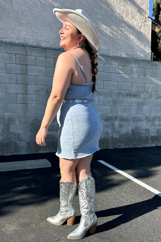 Washed Blush Pink Button Front Strapless Denim Mini Dress