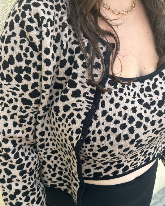 Leopard Print Round Neck Button Down Cardigan And Cami Set