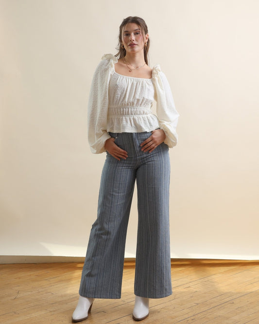 White Textured Bubble Knit Peplum Long Sleeve Blouse