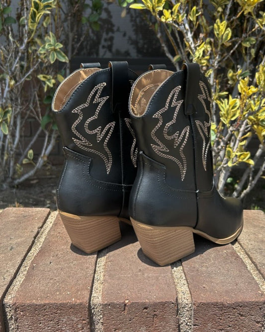 Black Faux Leather Embroidered Western Cowboy Corset Top