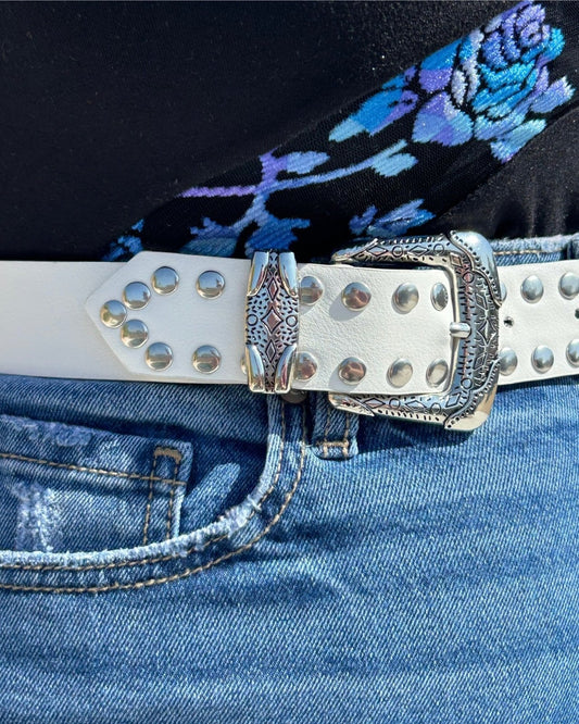 Ellie Black Y2K Boho Floral Low Rise Large Disc Belt