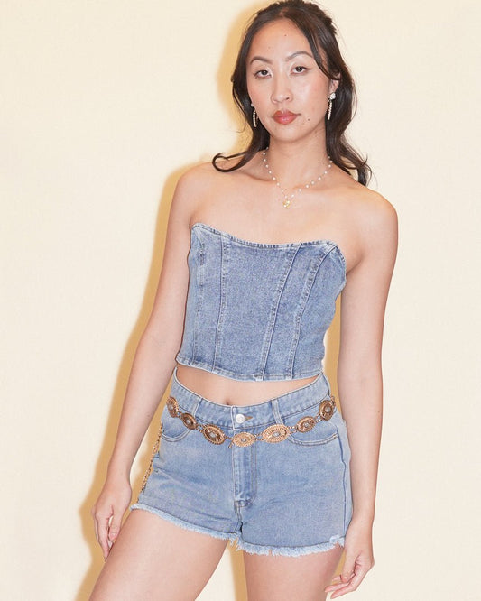 Willow Strapless Light Wash Denim Corset Top