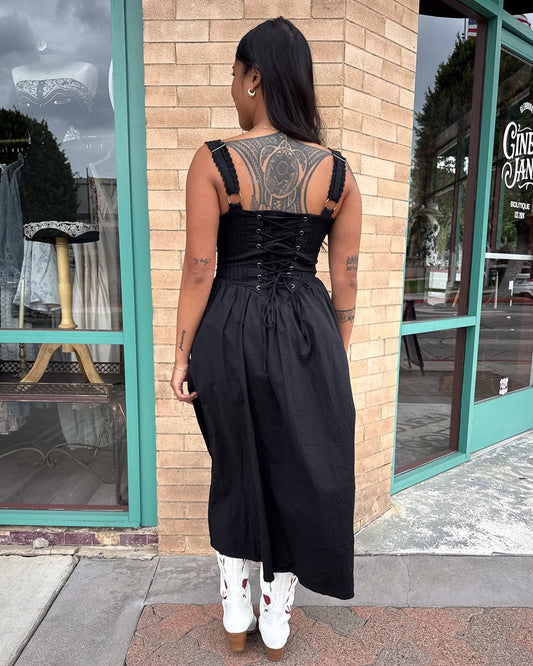 Second Verse Black Stretch Poplin Corset Side Slit Maxi Dress