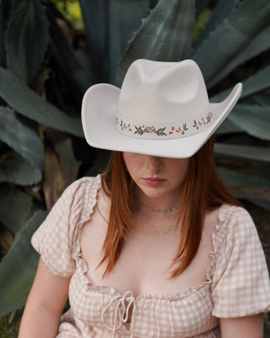 Budding Romance Light Grey Western Cowboy Hat With Ivory Rose Band