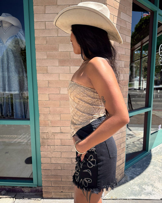 Superbloom Daisy Embroidered Strapless Denim Vest Top