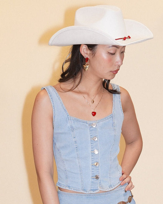 Hazel Light Wash Blue Sleeveless Denim Corset Top
