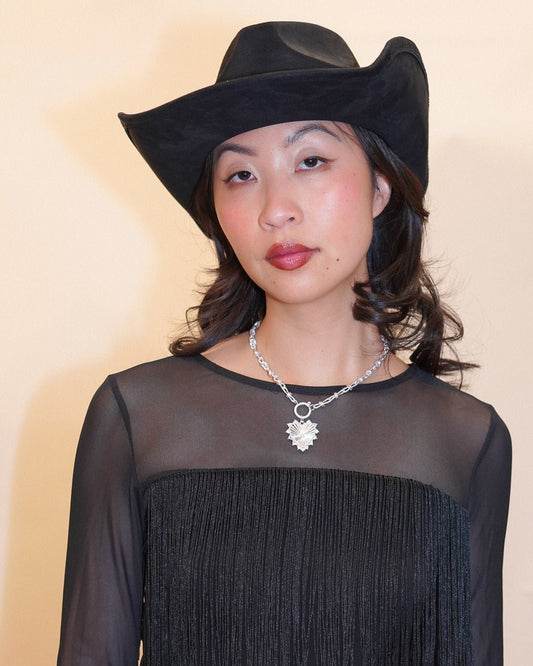 Midnight Rodeo Black Studded Faux Suede Fringe Flare Pants