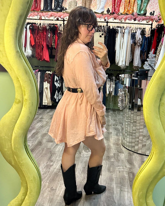 Blush Semi-Sheer Wide Sweep Paneled Gauze Shirt Dress