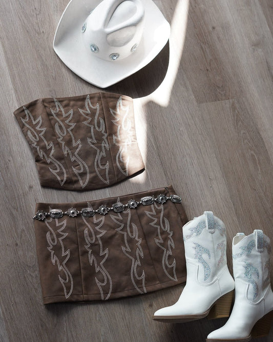 Rosa Brown Faux Leather Western Floral Strapless Corset TopRegular price $59.99 USDRegular priceUnit price / per-