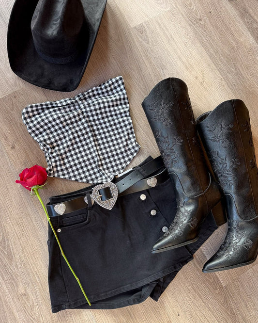 Black Engraved Heart Faux Leather Western Buckle BeltRegular price $16.99 USDRegular priceUnit price / per