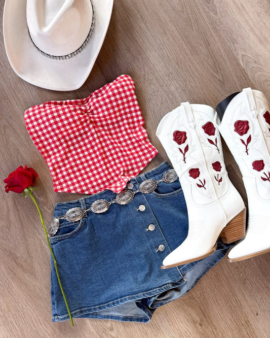 Dolly Red Gingham Tie Front Corset TopRegular price $20.00 USDRegular priceUnit price / per$29.99 USDSale price $20.00 USDSale