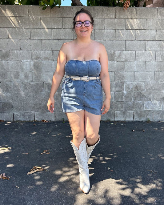 Frankie Medium Wash Strapless Denim RomperRegular price $59.99 USDRegular priceUnit price / per-
