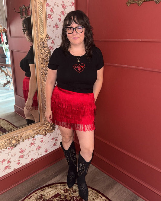Giddy Up Black Western Heart Embroidered Crop Tee